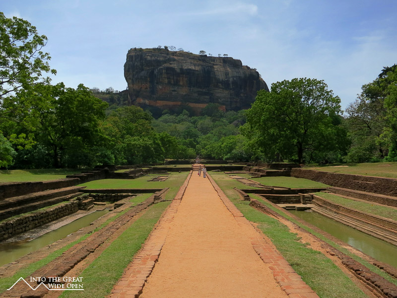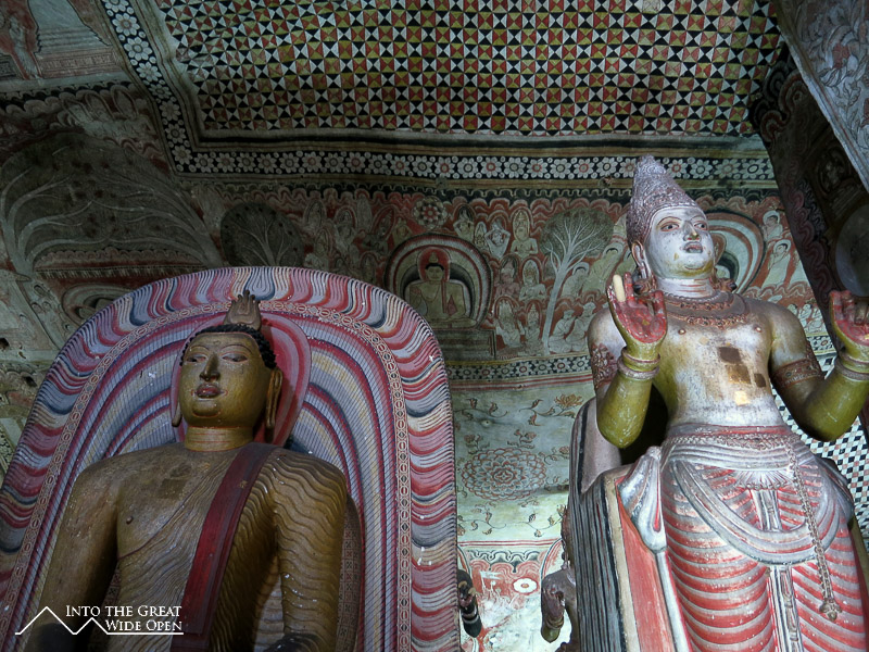 The main attraction near Dambulla, and perhaps the most famous in all of Sri Lanka, is Sirigiya, a giant rock outcrop that was the site of either an ancient fortress or religious community. The reddish rock juts out from the flat land and forests to offer commanding views of everything around. Brightly colored cave paintings are accessed by going up a steep spiral staircase that makes you appreciate how they must have been painted before the staircase existed. Partway up the rock there is a small plateau with the ruins of a lion’s paws that were made in the 5th century. The paws are all that is left of the entire lion that served as the entrance to the path up to the top of the rock. In the past steps were carved into the stone rock but now there is a metal staircase bolted into the rock, making the trip to the top considerably less hazardous. At the top there is little left but some foundations and an old pool, however the panoramic views are some consolation as the wind sweeps strongly off the plains across the top of the rock.