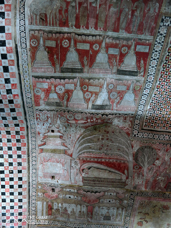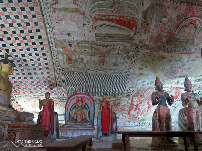The other attraction in Dambulla is the Golden Temple. The Golden Temple has one of the largest Buddhas in the world, finished, of course, in a gold color. But the impressive sights here are the brilliant cave paintings located on the mountain high above the temple. The several rooms feature an array of Buddhas and brightly colored paintings all across the walls and ceilings of the caves that make it seem like you are surrounded by rainbows of color. With flowers strewn across tables and dimly lit interiors the ambience is stunning.