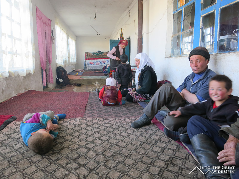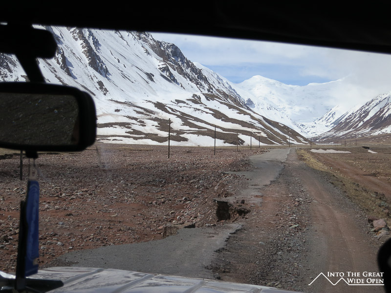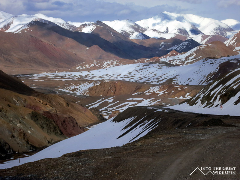 Leaving Sary Tash the road passed into further isolation towards the array of mountains visible on the eastern edge of Sary Tash. Parts of the road had eroded so badly through the series of storms and snowmelts that in places there was hardly anything left. After a small delay at Kyrgyz immigration we stopped just short of the border for tea, bread, and butter at the house of a family that lives in the middle of nowhere. Why they live there, I am not sure but the man said he and his family were happy there. Just past their house we crossed the Kyzl-Art Pass at 4282 meters and entered Tajikistan and the Gorno-Badakhshan (GBAO) region.