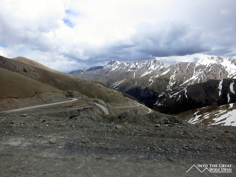 The Pamir Highway connects Osh, Kyrgyzstan to Khorog, Tajikistan and travels through some of the emptiest parts of the world; places that make you question why the road would even exist. The road begins innocently enough from the lowlands of Osh, passing through green river valleys and numerous small villages as it heads southeast towards Sary Tash. Just before Sary Tash a wall of mountains looms in front of the road and through a series of switchbacks the road folds back over and above itself, climbing to 3615 meters at the Taldyk Pass. From the top of the pass views of the steep descent and the array of snow covered peaks on the fringes of the Chinese border come into focus.