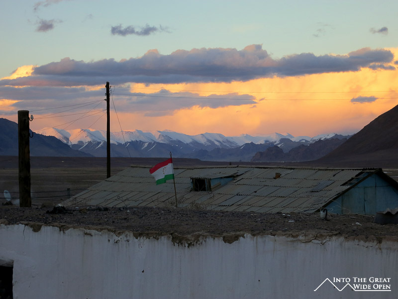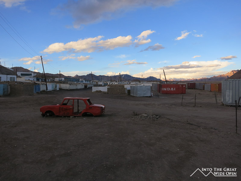 The final section of the road passed through more isolation to the highest pass, the Ak-Baital pass at 4655 meters, after which it was downhill to Murgab. The driver of the vehicle said that the guest house I wanted to stay at had closed but that he would take me to another one. It was getting late and I wasn’t about to go wandering the unlabeled and unlit streets of the town to verify this anyways. He took me to the house of a family he knew where I could spend the night. I had tea with them in what I suppose would be their living room but was just a room with a stove and some pads on the floor. After sitting in the uncomfortable jeep for eight hours and the hard floor for another hour I went out walk around the town.