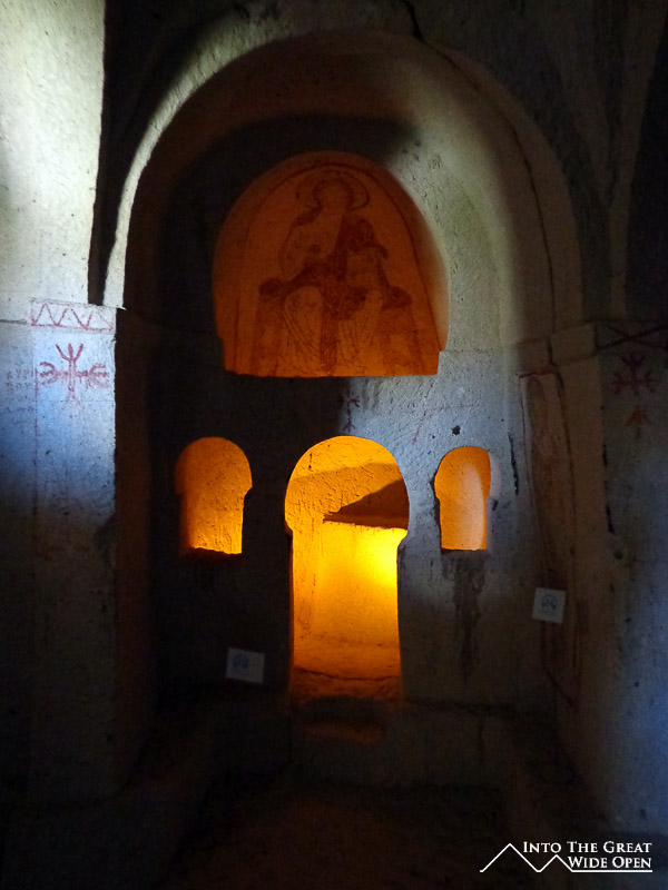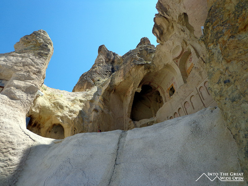 The whole area around here is filled with cave complexes, bizarre rock formations, and underground cities. Even with all the tourists clambering over one another the scale of these developments is really impressive. Renting a car for the day was a big help in escaping some of the crowds, and the excessive costs of the local tours. One of the most impressive sites was Uchisar Castle, a giant fortress and array of caves built atop and through the highest point in the region. From the top there are sweeping views of everything from the colored rock ridges of the Rose Valley to the neighboring cities in each direction. Further south is the Ilhara Valley, a narrow canyon with an absurd number of churches carved into the canyon walls. In seven kilometers along this valley there are more than a dozen churches, some with amazing paintings that have sadly been defaced by people carving their names into the rock.
