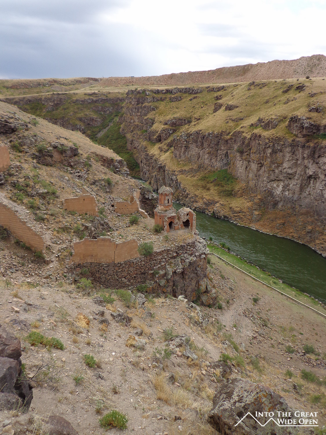 Regardless of recent events on another border, the past is never forgotten here as attested by a statue commemorating the Armenia massacre of Turks in 1918. In fact the entire site of Ani has a very timeless feeling to it. The crumbling walls of this massive fortification were once at the crossroads of civilizations and now despite their remoteness are still caught between two civilizations. At the center of the site on a large hill sits the remains of a castle, which today is still used by the Turkish military for defense purposes. As to why the Turkish military feels the need to occupy an amazing historical site I am not sure as they have other bases in the nearby area. Just north of the site sits a Turkish military base while opposite it across the river gorge is an Armenian base.