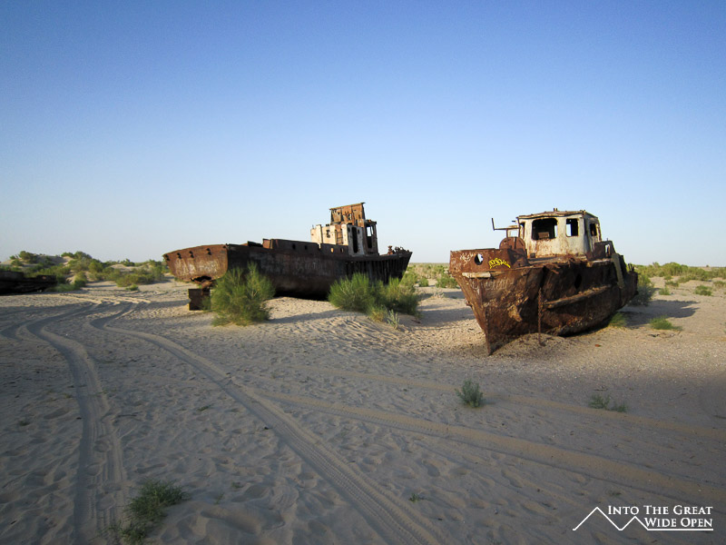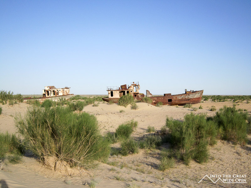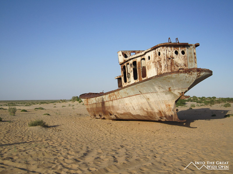If you are looking for examples of the helplessness of nature in the face of mankind then Muynaq would be one of the first places you would look. Years ago it used to be an important port city on edge of the Aral Sea, once upon a time when there was water here. Today Muynaq sits at the end of a road to nowhere, surrounded by a sea of desert. Decades of overfishing and irrigation, largely for the growth of cotton, has reduced the sea to a fraction of its size, in fact splitting it into two separate bodies of water, the North and South Aral Sea. What little water remains is inhospitable, containing three times more salt than the oceans. While the fresh waters of the sea remain a distant memory, the town still lingers on, a monument to the destructive powers of humanity.