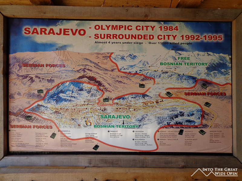 From 1992-1995 the city of Sarajevo and the outlying countryside and cities were war zones. At times Sarajevo was completely surrounded by Serbian forces holding strategic positions in the mountains around the city. Day after day snipers shot at civilians on the streets, forcing people to sprint across exposed intersections and take cover behind cars, steel plate barriers, and anything else they could find. Beginning at 5am mortar fire pounded the city daily, driving people into underground basements and away from windows. The toll this took on the city’s infrastructure was staggering. Today, almost 20 years after the conflict, shattered skeletons of buildings, riddled with hundreds of bullet holes, still stand precariously with trees taking root and growing through the windows that people once gazed out of.