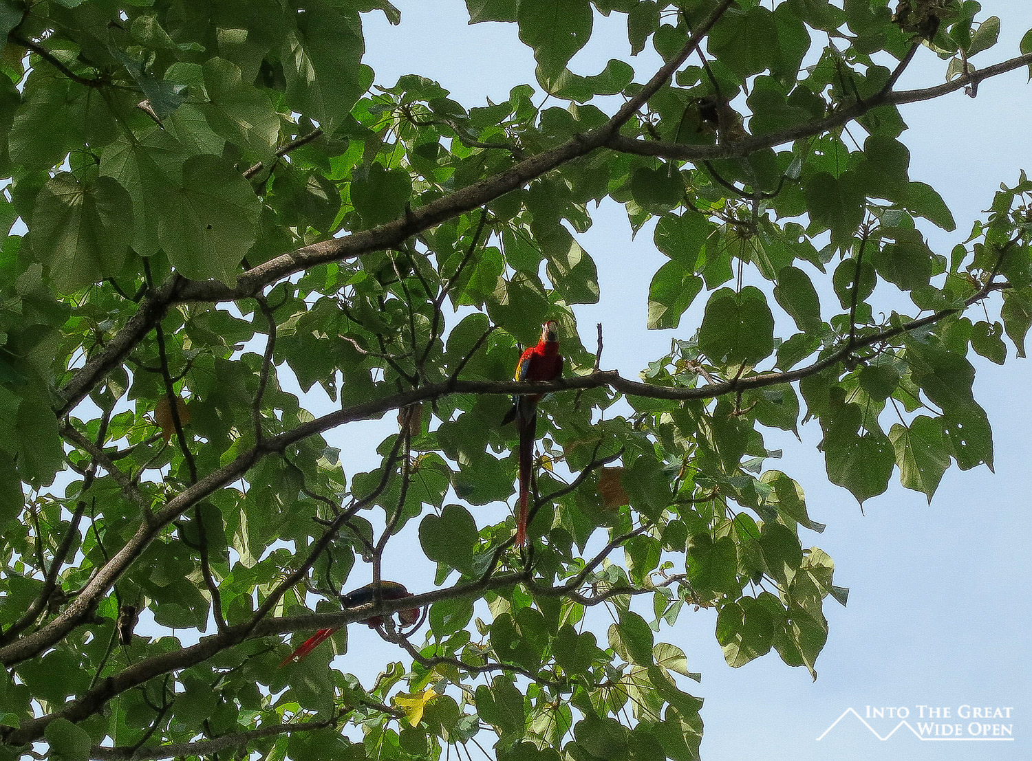 Colorful macaws in the tree