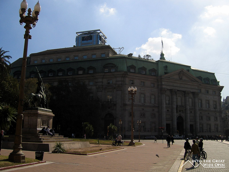 Monday I spent the day wandering all around the city center, looking at the old buildings and monuments and the famous Avenida de Julio with a large obelisk in the center bordered by 7 lanes of traffic on either side, which in turn are each separated by grass medians flanked by 3 more lanes of traffic for a total of 20 lanes. The road has to be crossed via four separate crossings and is supposedly the widest avenue in the world. Unfortunately during my visit two of the main attractions in Buenos Aires were closed for restoration and renovation, the Colon Theater and the Government House, known as the Casa Rosada or Pink House. The other government buildings can only be visited on guided tours which are run at various times throughout the day and week, often with no signs or information, making visiting a bit difficult.