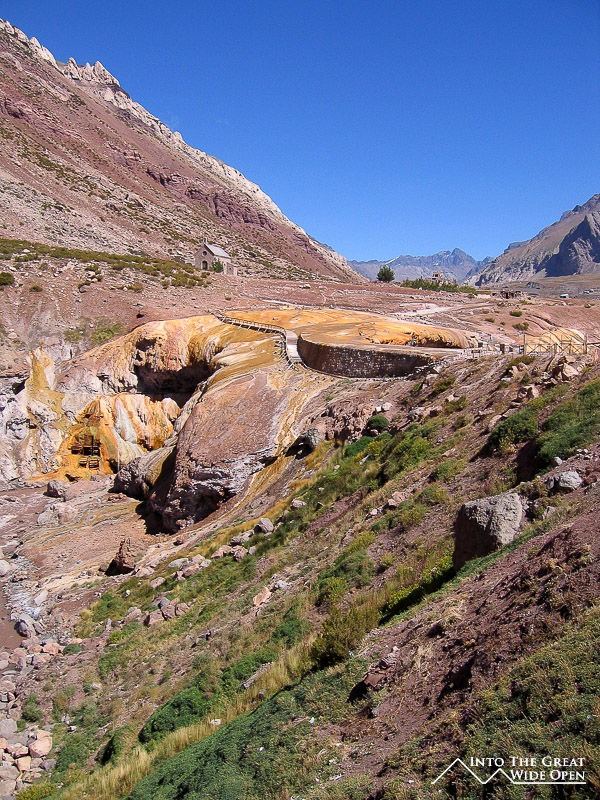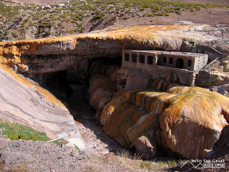 Coming from a city like Mendoza and being in Santiago right now, Puente del Inca is about as different as it gets. In Puente del Inca there is one hotel and one hostel, one small store from which to buy food, one place from which to make phone calls and no Internet access. The town exists because of the naturally formed bridge that spans the river gorge and the thermal baths that formed it, and also to provide access to the national park containing Aconcagua, the tallest mountain in the world outside of the Himalayas at almost 7,000 meters.