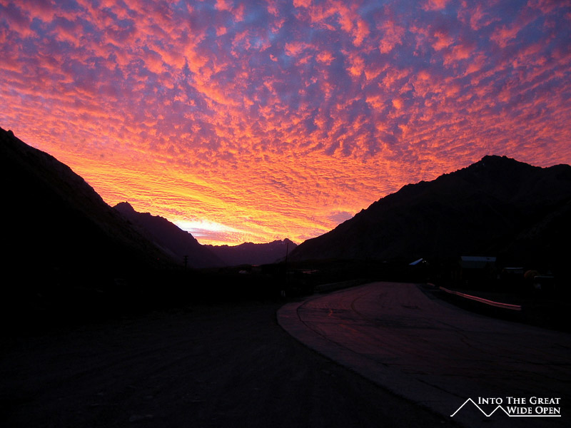 Around town, we walked through remnants of an old train track the runs all the way across the border into Chile, with many abandoned buildings. There is even an abandoned school bus in the middle of the valley, reminiscent of the magic bus from the movie Into the Wild that had recently been released. It felt somewhat ironic after our failed and aborted trip into the wilderness at Aconcagua. When we re-emerged from our hostel later in the day, the sun had already dipped below the mountains and the colors in the sky were amazing. It looked as if the sky were ablaze in a thousand shades of red, orange, and purple. It was the most beautiful sunset I have ever seen, and you couldn´t even see the sun. After lingering to watch the colors change we went back to the hostel and saw an amazing rock and fossil collection that this guy in our hostel had. He is a collector who travels all around South America searching for minerals and fossils. The most interesting item he had was a giant fossilized shark tooth the he had found in the deserts of Peru near the border with Chile. It was probably 10 inches long and 6-7 inches wide, simply amazing when you consider how big the shark must have been to fit that size of tooth. All in all a very interesting and improbable end to a great few days which, even though things didn´t work out exactly as planned, they were still very enjoyable.