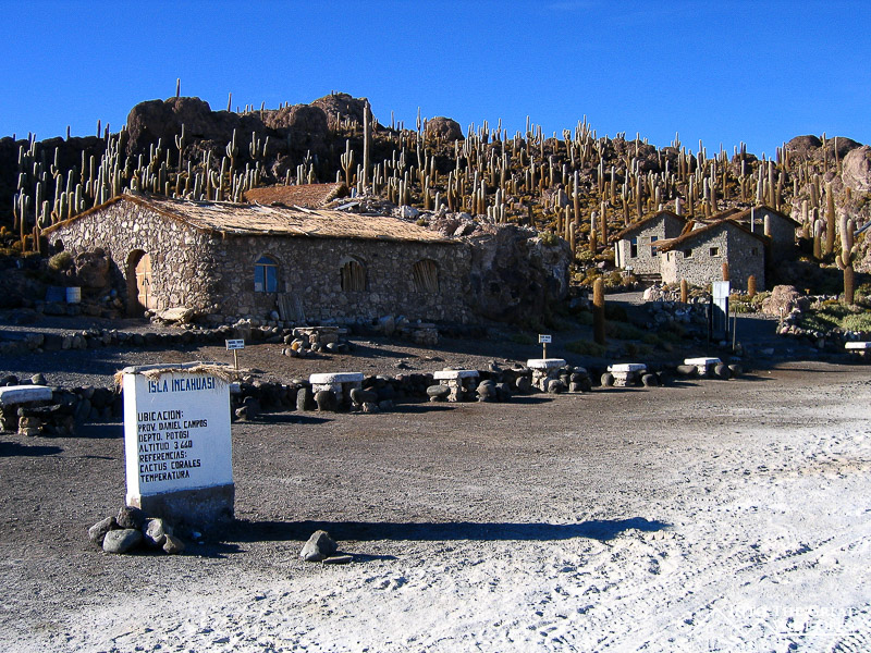 On the final morning we arose before sunrise and drove out into the Salar de Uyuni. As the sun slowly began to come up it illuminated the vast white expanse of the salt flats and showcased the strange roughly hexagonal patterns that had formed on the surface. After the sunrise we drove out to Isla de Pesca, a fish shaped rocky island in the middle of the salt flats that is covered with cactus and coral resulting from the area’s time underwater some 10,000 years ago. There is even a coral arch in the middle of the island with impressive views out to the white salt flats. The contrast of the cactus with the white of the salt was impressive. I took about fifteen to twenty minutes to walk out onto the salt flat and was amazed at the stark nothingness that existed out there, definitely an inhospitable land. As far as one could see the white expanse of the dried salt stretched out to the horizon with mountains and volcanoes looming in nearly every direction. We crossed the Salar de Uyuni and on the edge we stopped in a little village where they mine the salt. This part was also the first stop for tours heading out of Uyuni, meaning that there were about 25 Landcruisers a day in the low season and up to 50 per day in the high season, so this isn’t exactly off the beaten path anymore.