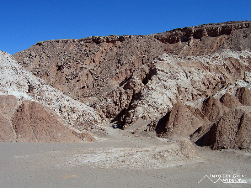 Even with so many tour operators it was amazingly difficult to get a spot on the evening tour to the Valley of the Moon and the Valley of Death. Nearly every place was full but after asking at every single tour operator some spots finally opened up. The Valley of Death was first, with sand dunes and eroded rock formations, followed by the Valley of the Moon for sunset, with similar landscapes and panoramic views of some salt deposits and the snow-covered peaks towards the Bolivian and Argentinian borders. Once the sun sets, the temperature drops rapidly and it gets quite cold at night.