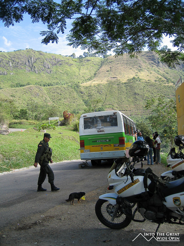 The next morning I dragged myself out of bed at dawn and made my way down to the main square where I waited for the bus with four other Colombians. We waited until about 6:35am when the bus office opened and the guy made a phone call and told us that the bus never arrived at the city before us, he didn´t know what happened to the bus but it had never arrived. He got us tickets for the 9am bus and so we had to wait for about two hours. When 9am rolled around we got in the back of a pickup truck taxi and departed for the road junction outside of town where the bus would pick us up. Our truck kept picking up people until we had 8 people in the back with one kid hanging halfway outside the truck and at least six people inside the truck. Finally we arrived at the crossroads where they dropped us off to wait for the bus along with six soldiers that there were there just standing around and a few other people waiting for buses.