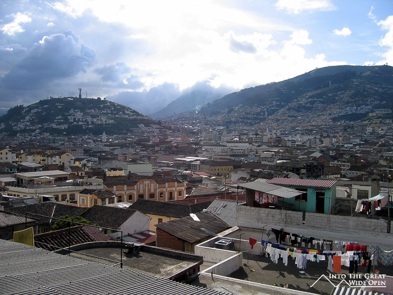 To me, Quito was not very impressive; it seemed a rather charmless result of the mixture of old and new influences. There are still plenty of cultural remnants relegated to the numerous museums but in districts of the new city like Mariscal there is a dominance of fast food, chains like KFC, Pizza Hut, McDonalds, Papa Johns, and even some local fast food chains. One place was even advertising Texas fried rice, whatever that might be. It was all a little bit too much for me. Quito is beautifully set in a valley between several large mountains, filling up the basin with houses creeping up the mountainsides as if they had been poured into the valley.