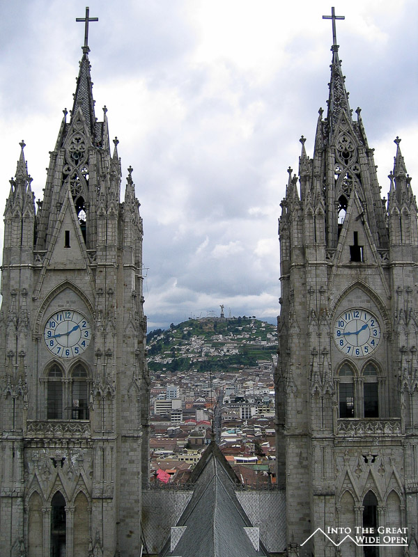 The main square of the old city is dominated by the Basilica, an immense gothic style church that is ornately decorated and is great for exploring as you can climb to the tops of the towers through a series of stairs, spiral staircases, and ladders. You can even ring the church bells anytime you want, although this is probably not encouraged. The public transportation is pretty good with three lines running north-south along different main streets and the city is narrow enough to walk east-west without much problem. The bus terminal is another matter. The Quito bus terminal is one of the more depressing places I have seen on my trip. The whole thing resembles a jail and I was very glad to be arriving in the late morning because being there at night would certainly give you nightmares; my guide book even stated that the bus terminal is unsafe at all hours of the day.