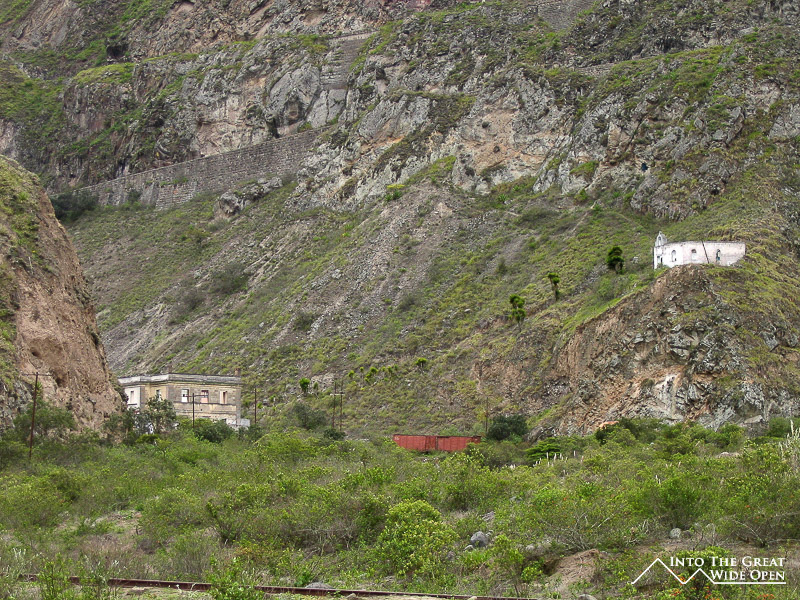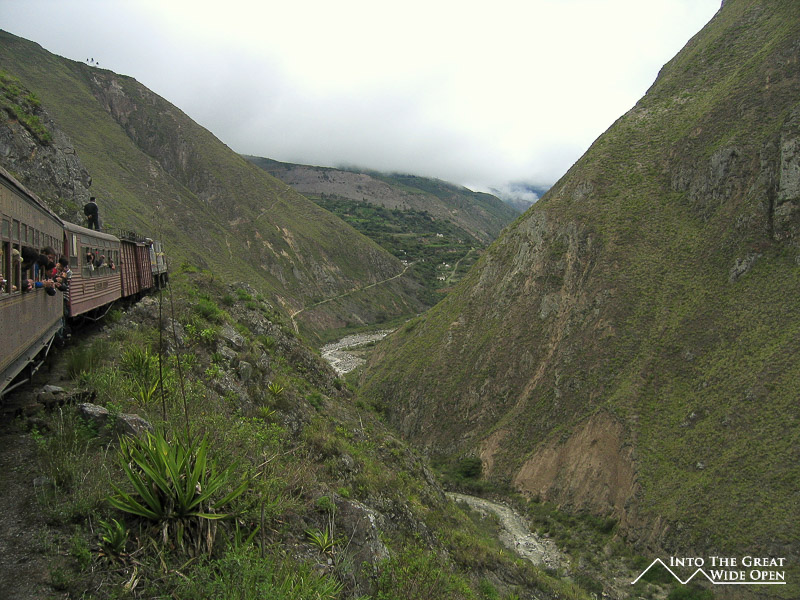 Nonetheless, it made for much easier time boarding the train as everyone has an assigned seat and it was all quite orderly. The train ride itself was nothing special. It was slow, at one point a dog was outgaining us until it came to a ditch, bumpy, and the scenery was nice but not as spectacular as I was hoping for. For me, the interesting part was seeing all the abandoned buildings along the way that have no reason for existing now that the train doesn´t stop there anymore and there is almost no road access at all. The Devil´s Nose was interesting for the scenery, but as for the engineering accomplishment in building the tracks, I wasn´t that impressed. The train travels on what they call a V switchback, which simply means that it runs downhill to where the next track line intersects it and then it switches tracks and continues downhill in reverse.