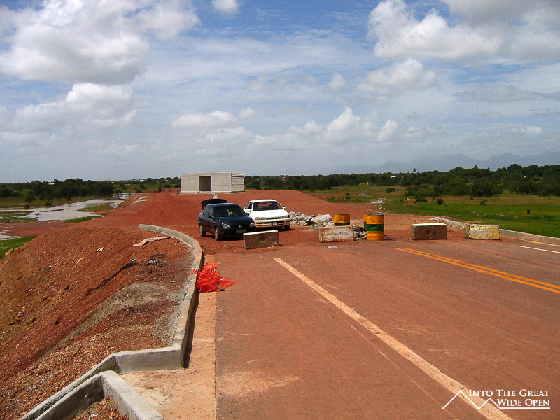 To get to Guyana from Manaus you have to take a 12 hour bus ride to Boa Vista and then another bus to Bonfim, the Brazilian town on the border. The bus drops you off at the Policia Federal where you can get an exit stamp. Brazil paid for the construction of a new bridge that spans the river separating Guyana and Brazil, the bridge, however, is closed to vehicular traffic and only facilitates the crossing of pedestrians, motorcycles, and bicycles. The well-paved road from Brazil continues to the Guyana side of the border where the road simply ends and a red dirt track extends the rest of the way to somewhere short of Georgetown where I assume that the pavement resumes. Moneychangers operate on the edge of the bridge and taxis wait to take you into Lethem, the first village that is a few kilometers away.