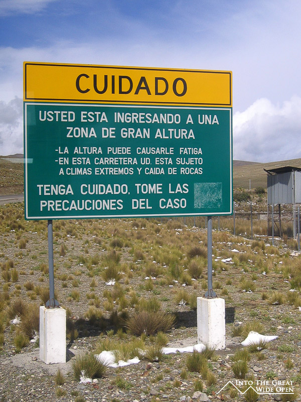 Nevertheless, my journey to Cuzco through the mountains continues with a five hour bus ride from Huaraz to La Union, an hour past Huallanco (Huanuco). Shortly after leaving the limits of Huaraz the bus made its way south of most of the snow capped peaks of the Cordillera Blanca and then turned east to cross the mountains. The bus was stopped at a police checkpoint right next a sign welcoming us to the high altitude zone and warning of the effects of altitude. The sign was certainly justified as the bus wound its way around the high altiplano across some desolate uninhabited lands at elevations of around 15,000 feet. As we crossed this beautiful landscape there were high mountains with rocky snow dotted peaks and dozens of waterfalls flowing off their rocky faces down into the grass covered lower slopes.