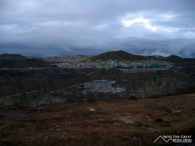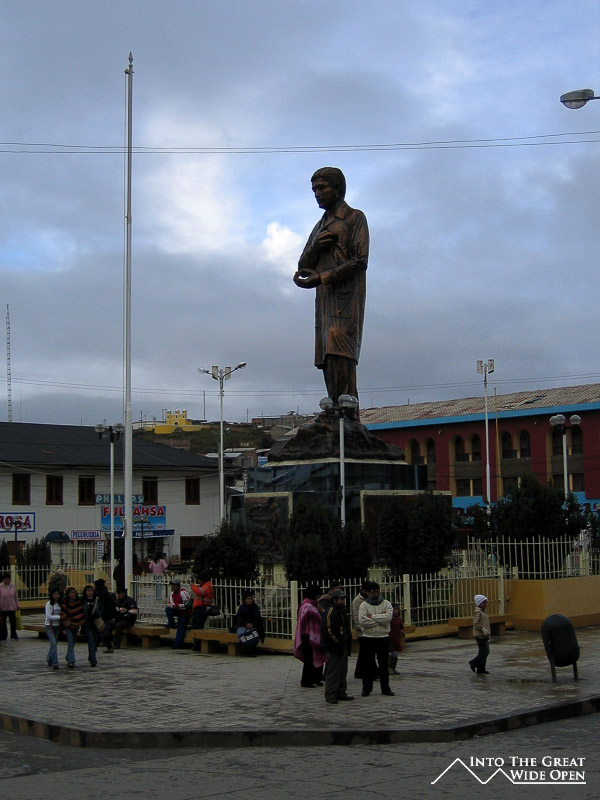 South of Huanuco the paved road reappeared and led towards Huancayo, a large city 7 hours away. Since I arrived in the early afternoon I could only make it as far as Cerro de Pasco, about 3 hours south. What to say about Cerro de Pasco? On the cover it looks like a very grim place with lots of deteriorating buildings constructed of grey cinder blocks ringing a large mining pit at an elevation of 14,300 feet. The fence with concertina wire around the entire mine pit and the abundance of faded and shoddy statues makes it feel like communist bloc USSR during or after the cold war. Despite the cold and grayness, the city was teeming with life on the streets and it seemed very friendly, although some people looked at me as if they had never seen a tourist before.