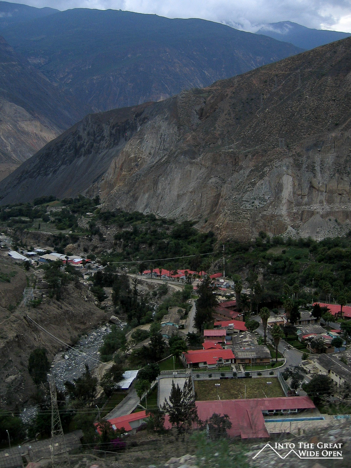 The scenery continued as we descended into a canyon and stayed inside the canyon for most of the rest of the journey to Sihuas. The bus finally arrived in Sihuas, two hours late, after ten hours. It was around 6:30pm and I wandered around the two or three main streets of the town looking for a place to stay. There seemed to be three hotels and the first one I tried the door was open but no one was there, at the second one I had better luck. The room was certainly nothing fancy, it was small with bare cement walls and dimly lit, kind of like spending the night in a jail cell, but the price was very cheap at 5 soles ($1.67)! I was off on another bus to Huaraz at 8:30am anyways so I wasn’t too concerned with the state of the lodgings. I had some dinner and looked around for a cold drink but I couldn´t find any store or restaurant in town with a refrigerator so I gave up and bought something warm and went to sleep.