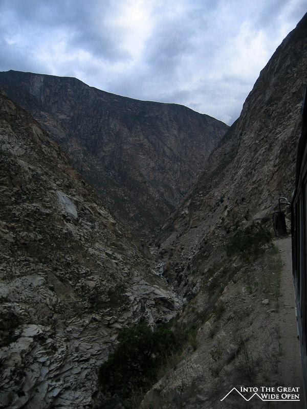 Further upriver there were waterfalls flowing down the steep sides of the canyon and a few walking bridges across the river. Soon we were so high up above the river it was hard to see it straight down below. As the road followed the river, the gorge gradually started to widen and soon we reached a paved road, the first I had seen since the brief stretches around Cajamarca, over forty hours of bus travel ago. What a blessing it was to travel on this paved road the rest of the way to Huaraz, it was so much easier and quicker, even in the slow bus. About an hour outside of Huaraz it started to rain and there was thunder and some dramatic lightning but this all cleared by the time we arrived in Huaraz after 12 hours of travel.