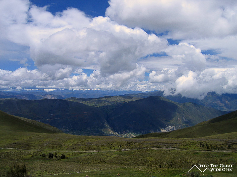Leaving from Tayabamba the bus made its way higher into the mountains on the start of the 8-hour trip to Sihuas. As the road climbed higher we left the reaches of civilization behind and passed into the high altitude zone where there were barely any visible signs of life. At this high altitude there was only short grass on the mountains and no trees, nothing higher than one to two feet tall. It was actually nice to see hillsides unscarred from agriculture with roaming herds of sheep. At one point we passed a grassy plateau where four wild horses were running while the snow capped peaks of the Cordillera Blanca reached up to the clouds in the distance, just an amazing sight. The only thing to impact the excellent scenery was the family friendly movie showing on the bus where in the brief time that I watched it two women were raped, a dog was shot, and the criminals shot a man execution style.